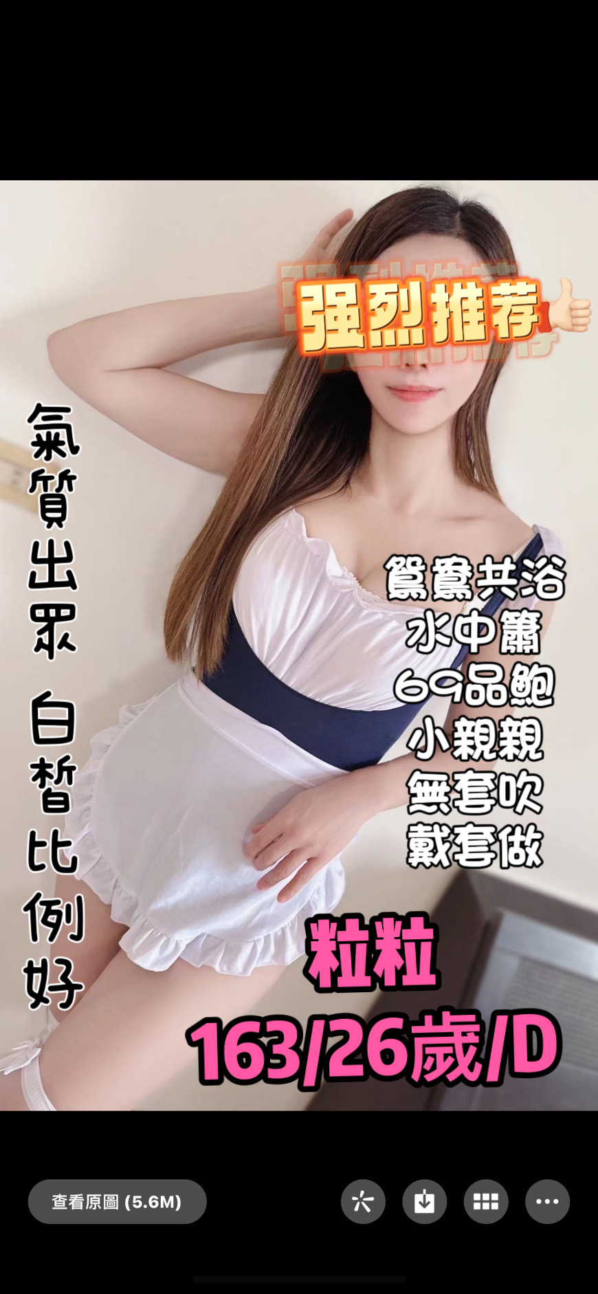 白皙身材氣質優雅,沒上過班,把首下海初賣留給你!優質女孩,無風塵味但是真實體驗高潮不假裝。 服務可陪洗,水中簫,情色按摩,互動挑情,無套吹,69品鮑,舌吻看感覺,戴套做。